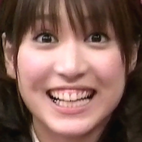 両隣の歯に比べて左上3番が歯が大島麻衣は白すぎて目立っていた (画像は20歳時)。